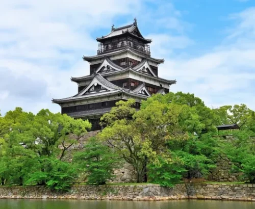 El Castillo de Hiroshima, ubicado en la famosa ciudad del mismo nombre, fue reconstruido tras la Segunda Guerra Mundial y ofrece una mezcla de historia y belleza. Su imponente torre se encuentra rodeada por un foso y jardines, lo que lo convierte en un lugar con escenarios tranquilos.