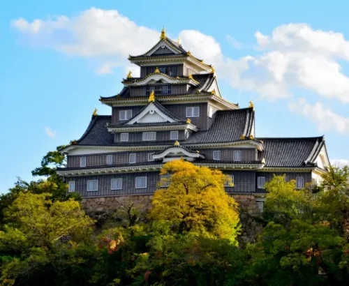 Ubicado en la ciudad homónima, el Castillo de Okayama, también conocido como “el Castillo del Cuervo Negro”debido a su color, destaca por su elegante arquitectura y su cercanía al jardín Korakuen, considerado uno de los tres jardines más bellos de Japón. Su diseño único ofrece una gran belleza visual.
