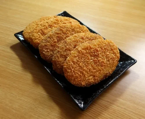 Korokke proviene del vocablo francés “croquette” y es una especie de croqueta empanizada, generalmente rellena de carne picada o puré de papa. Su textura crujiente por fuera y suave por dentro la convierte en un bocado delicioso y reconfortante.