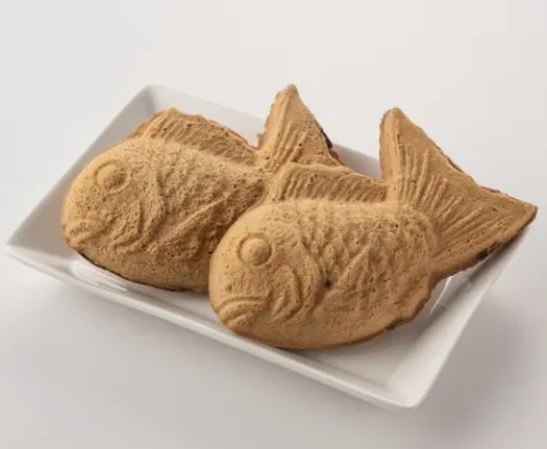 El Taiyaki es un pan en forma de pez, tradicionalmente relleno de pasta de frijoles rojos (anko), aunque también existen versiones con crema pastelera, chocolate u otros sabores. Su exterior crujiente y su relleno dulce lo convierten en uno de los postres callejeros más populares de Japón.