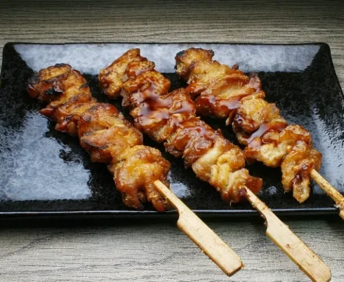 El Yakitori es uno de los platillos más populares tanto en Japón como en el extranjero. Consiste en brochetas de pollo asadas a la parrilla y glaseadas con una sabrosa salsa de soya dulce. Aunque simple en apariencia, su sabor es profundo y variado, ya que puede prepararse con distintas partes del pollo, desde pechuga hasta muslo, piel o incluso hígado.