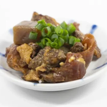 El doteyaki son trozos de carne de res estofados en una salsa espesa a base de miso y sake. Este platillo tiene un sabor robusto y es comúnmente servido como acompañamiento en bares y restaurantes locales.