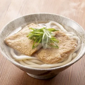 El kitsune udon es una sopa de fideos udon acompañada de tofu frito (llamado «aburaage») que le da un sabor único. Es un platillo reconfortante y popular, especialmente en los días fríos.